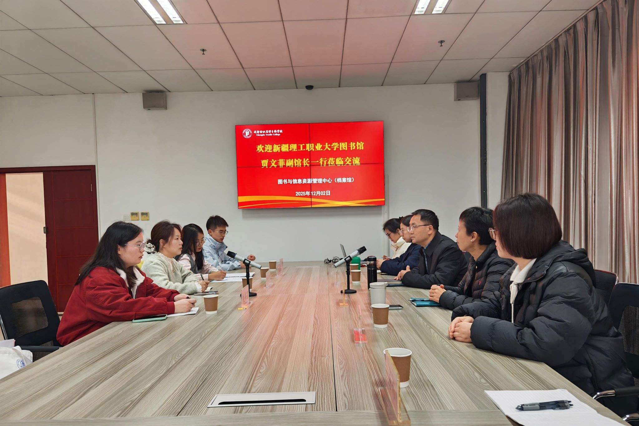 12月2日,新疆理工职业大学图书馆副馆长贾文菲率馆内相关业务骨干一行4人,专程赴我馆开展参访交流。图信中心主任李鹏、副主任钟丽平、各科室负责人及相关馆员参加交流会。