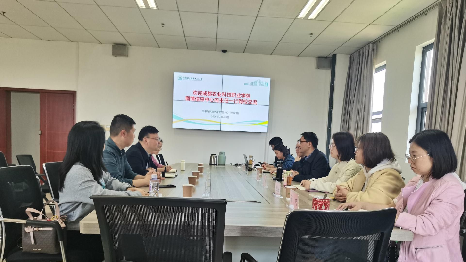 4月9日,成都农业科技职业学院图情信息中心主任向模军一行赴我校交流。我校图信中心主任李鹏、副主任梁石、各科室负责人参加交流会。